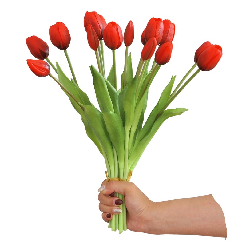 - Different from the ordinary PU or fabric material artificial tulip flowers commonly seen on the market, our artificial tulips made of high-quality soft PVC material are closer to real tulip flowers.