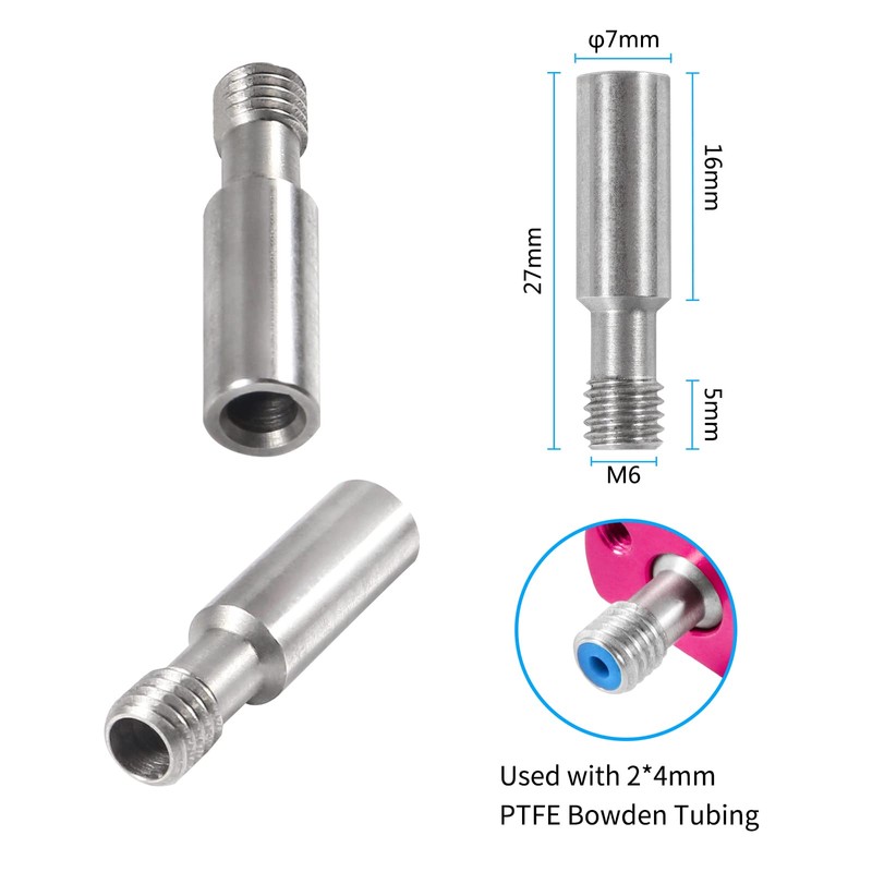 - Material: the 3D printer hotend is strong and sturdy, not easy to block or leak, and stable output print. Frosting surface aluminum heater block/heatsink, stainless steel throat/PC4-M10 pneumatic fitting