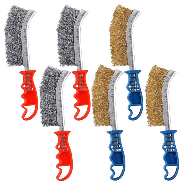 AOKLIT 6 Pack Wire Scratch Brushes Set,3 Pack Stainless Steel Wire Brush and 3 Pack Copper Plated Wire Brush for Cleaning welds, Rust