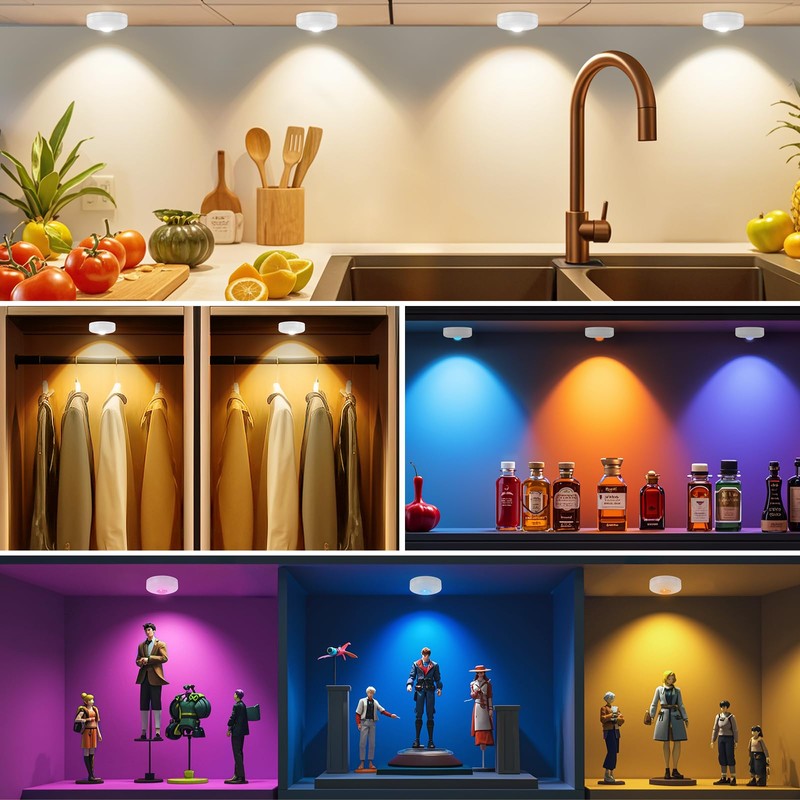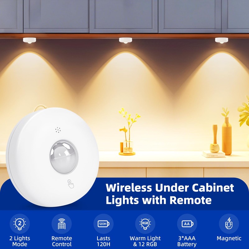• Remote & Manual Control: The LED puck lights with remote control allowing you to control color, brightness, and timing from up to 20 feet away. You can also manually press the light—short press for on/off and change through 4 colors, long press to adjust brightness