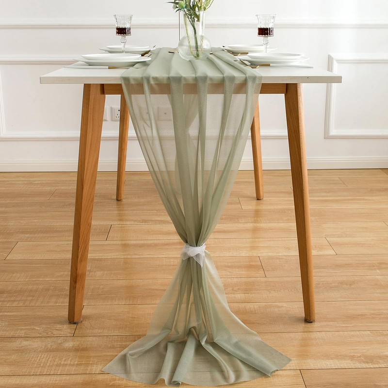 AOKSUNONA Chiffon Table Runner Eucalyptus Green 27x118 Inch Polyester Wedding Decorations