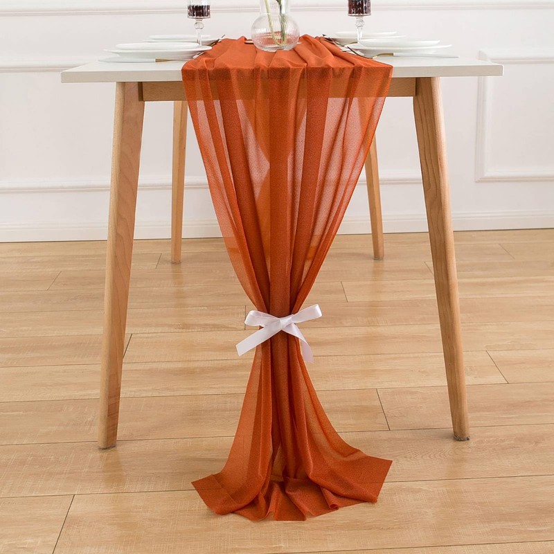 Aoksunova Chiffon Table Runner, Wedding, Terracotta Table Runner, Outdoor Table Decoration
