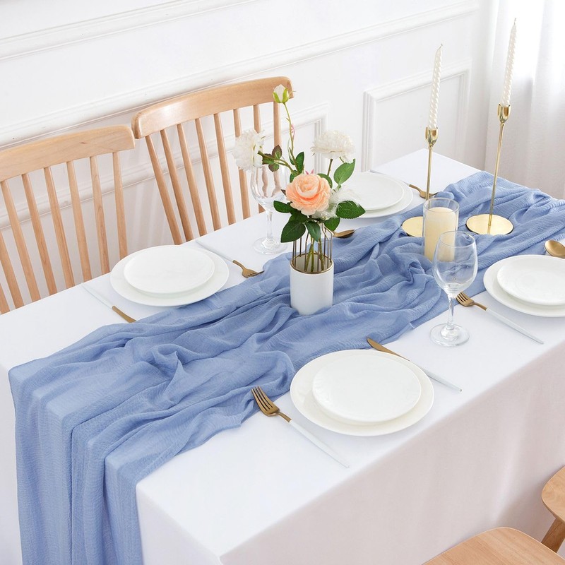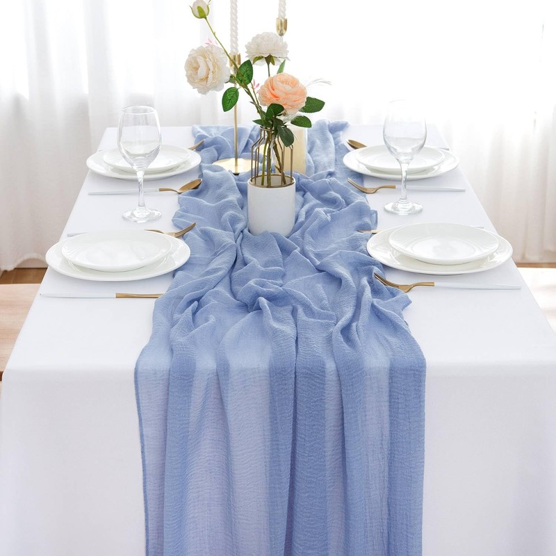 - Soft muslin table runner: This table runner with wrinkled texture is made of super soft cheesecloth fabric. It is romantic, delicate and flowing.