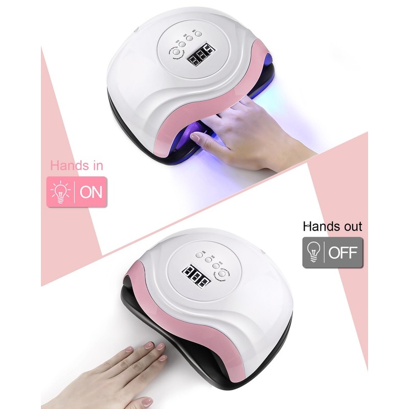 - Smart sensor: nail lamp has infrared sensors on both sides of the lamp, when you put your hand in, it will automatically turn on. You do not have to press the button for a long time, it turns off when you stretch out your hand, which is very practical