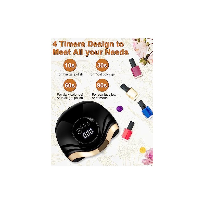 - 168W LED NAGELTROCKNER UND SUPERSCHNELLE TROCKNUNG:168-W-UV-LED-Lampenperlen basieren auf fortschrittlicher Dual-Waveength-Technologie (365 nm + 405 nm),sodass sie schnell getrocknet werden können,um verschiedene Arten von Nagellack,Strasssteinen und Leimhärtung aufzutragen.Ausgestattet mit 36 langlebigen LED-Lampenperlen gleichzeitig können mit Nagellack beschichtete Nägel schnell getrocknet und die Aushärtezeit um 80% verkürzt werden