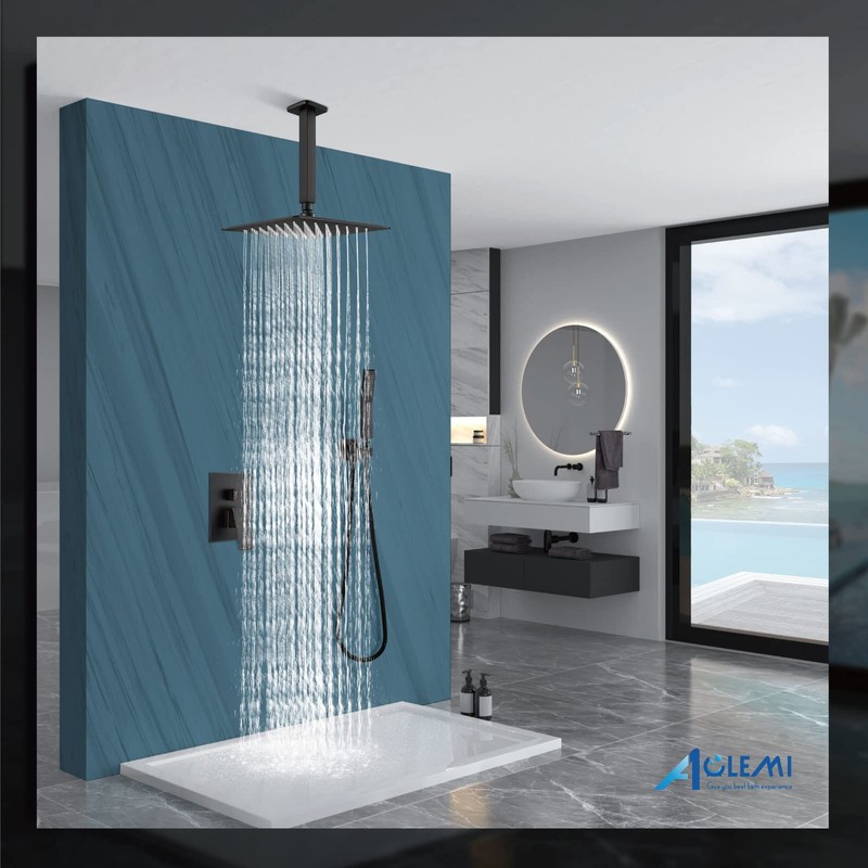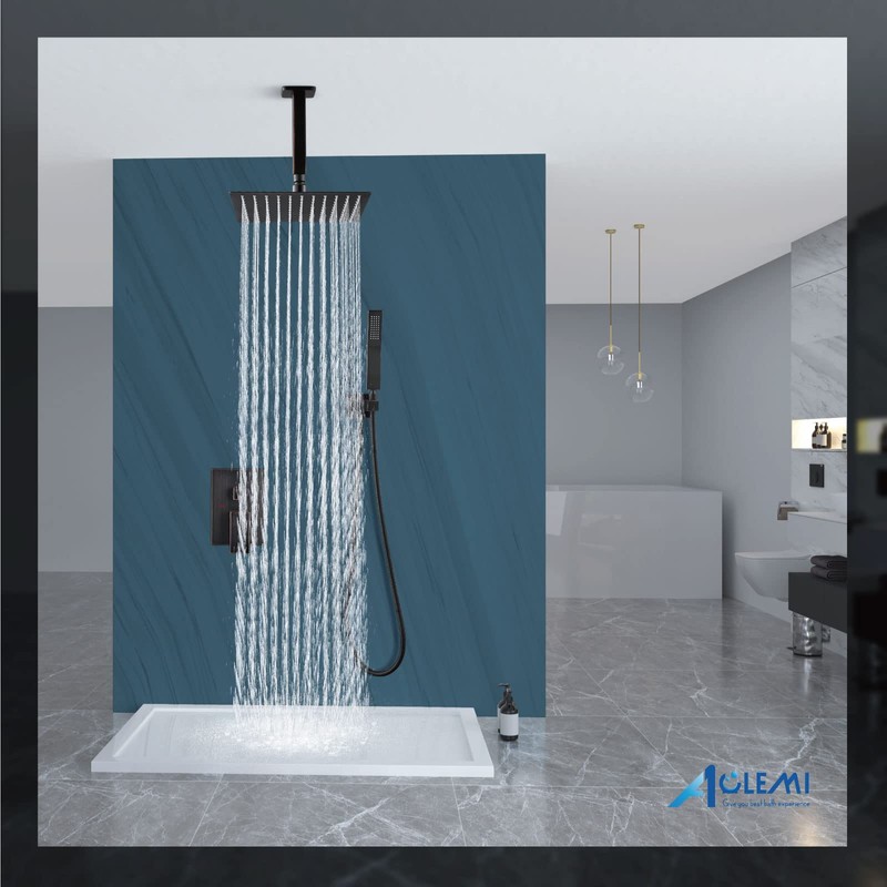 - 【What’s Included】: Ceiling Mounted Shower Head. Installation Instructions, shower head, shower arm, handheld shower holder, handheld shower, rough-in valve, all install hardware.