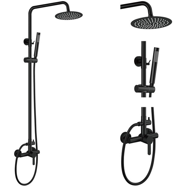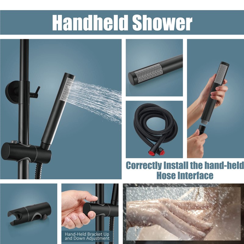 - 【Dual Functions】this outdoor shower trim kit is high quality matte black finish,including diverter valve,can easily switch between hand shower and top showerhead.