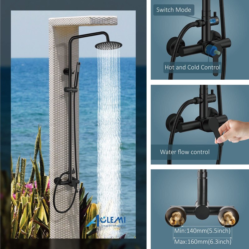 - 【Easy To Install】Wall mounted exposed outdoor shower system, 2 holes installation, Two modes connectors are available NPT 1/2 hole, Comes with all mounting hardware and installation instruction.