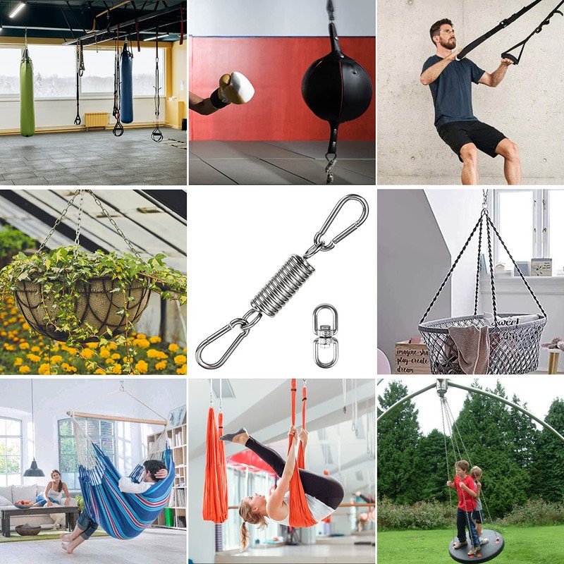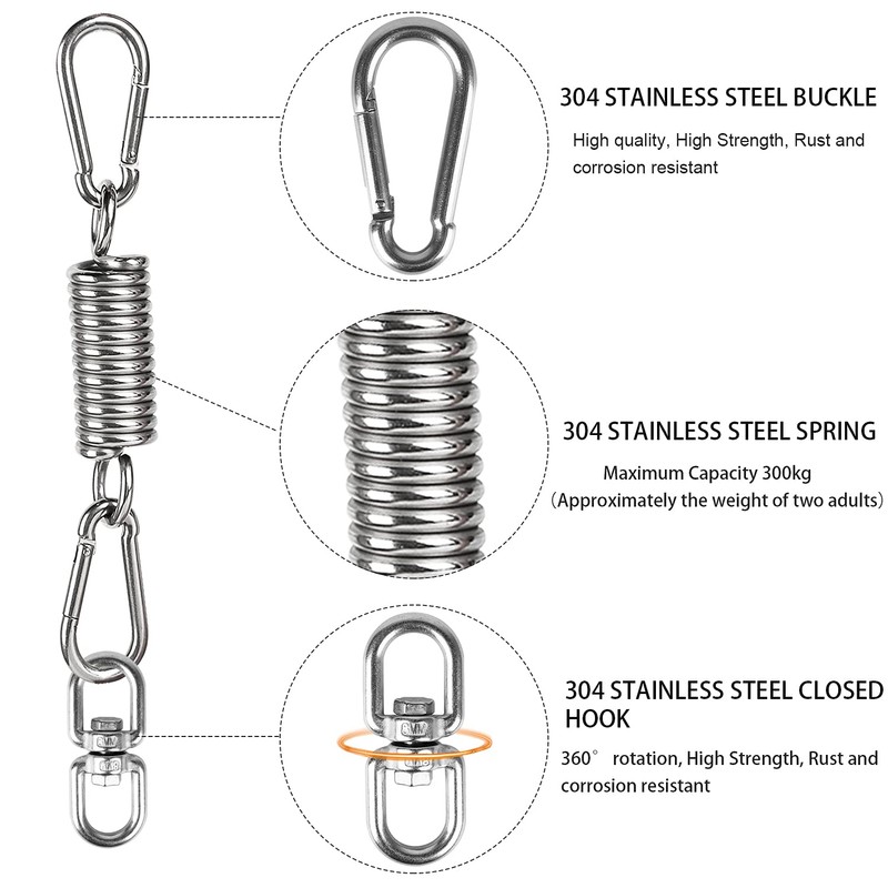- Various uses: spring stainless steel can be used for hanging chairs, chandeliers, hammocks, sandbags, sling trainers, awnings, hanging chairs, hanging holes and hanging chairs. It can be used at home, in the garden, on a boat or in the wild for camping, travelling and fishing.