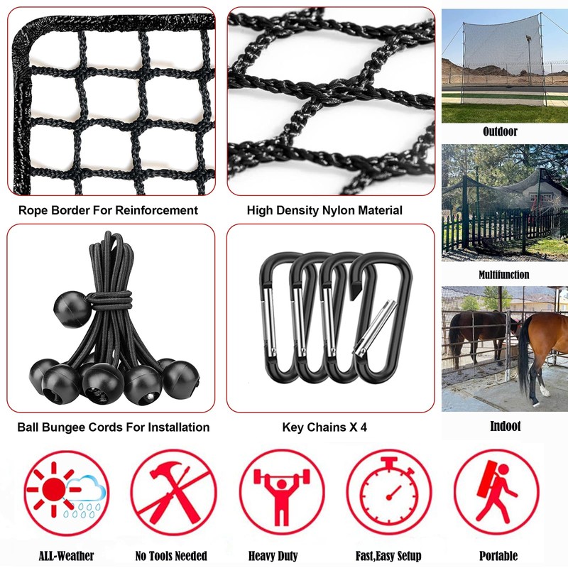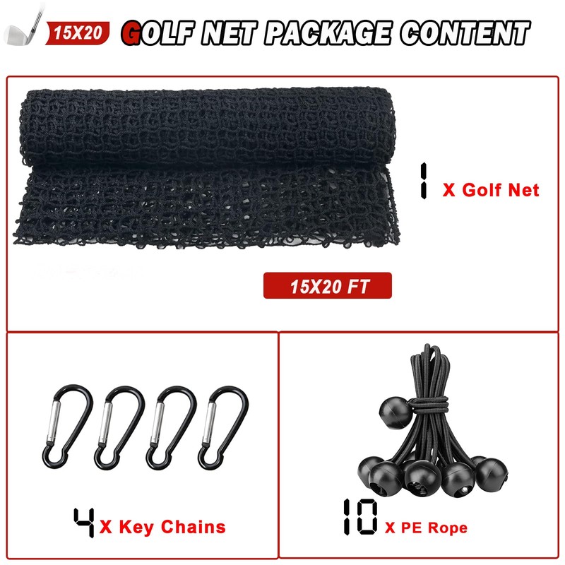 - 【Easy Installed】Golf chipping net,The package contains a batting cage net in addition to 10 ball bungee cords and 4 key chains. These will help you to install sports netting as soon as possible.