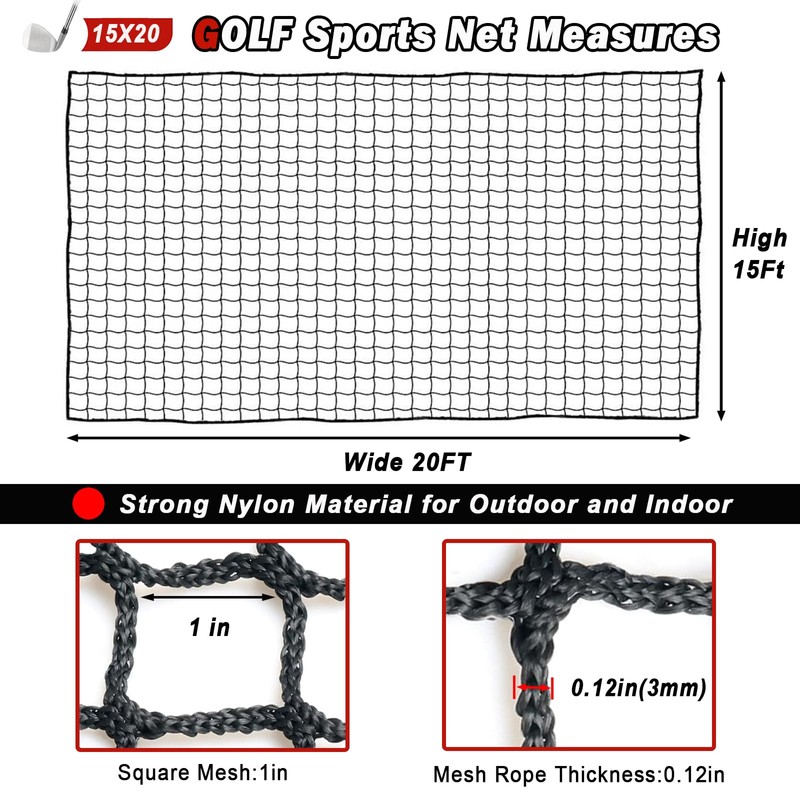 - 【Durable Material】The golf net is woven with high-strength nylon fibre mesh material with high impact resistance and durability, enabling the nets to withstand the high impact of golf balls for a long period of time.