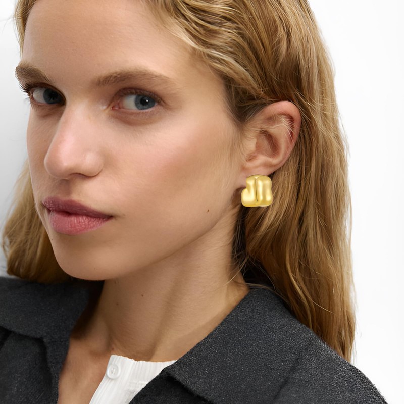 - Chunky Geometric Earrings: Dainty gold square stud earrings with elegant lines. Minimalist gold designs are suitable for daily wear, wear them to make you stand out