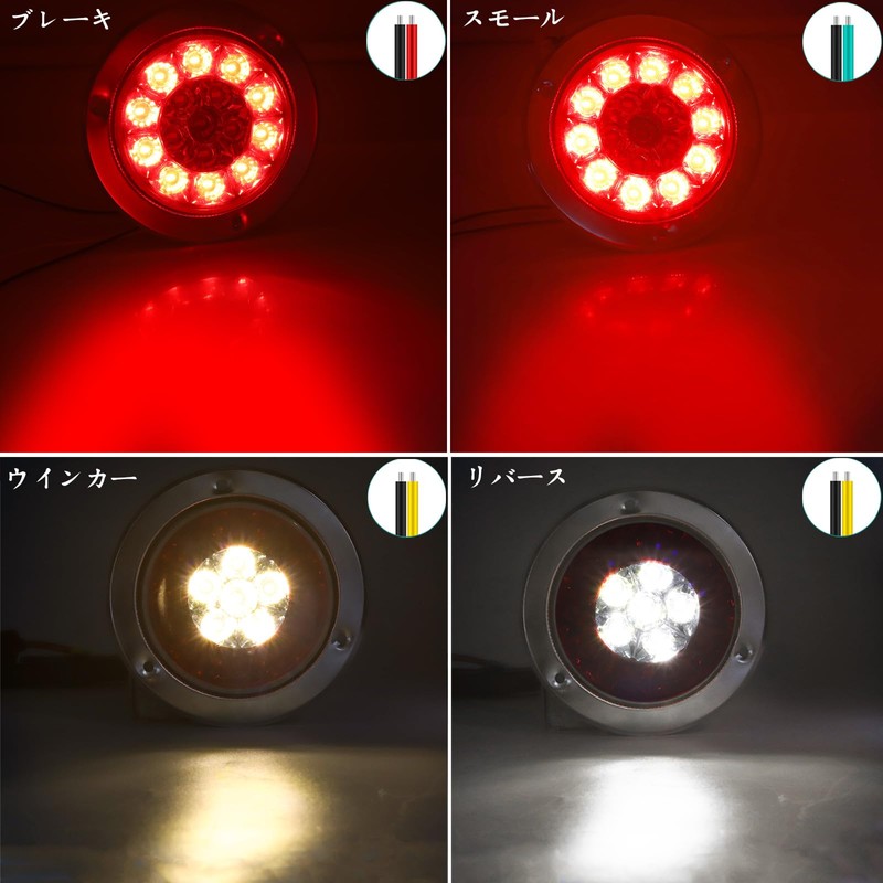 ★【Aoling Truck Tail Lamp Round Shape Trailer Tail Lamp Light Tiger Tail Lamp LED Boat Trailer Tail Lamp Light Trailer Tail Lamp Truck Tail Lamp 12V 24V 16LED Plated Shell Brake + Small + Turn Signals + Reverse 4pcs】