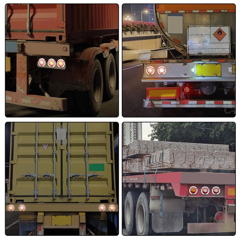 - ★【Equipped with 16LED】This round track tail lamp set includes 2 red high & red low & yellow light trailer tail lights and 2 red high & red low & white light track tail lights. Each lamp is equipped with 16 high brightness LED light emitting elements that are bright enough to save energy