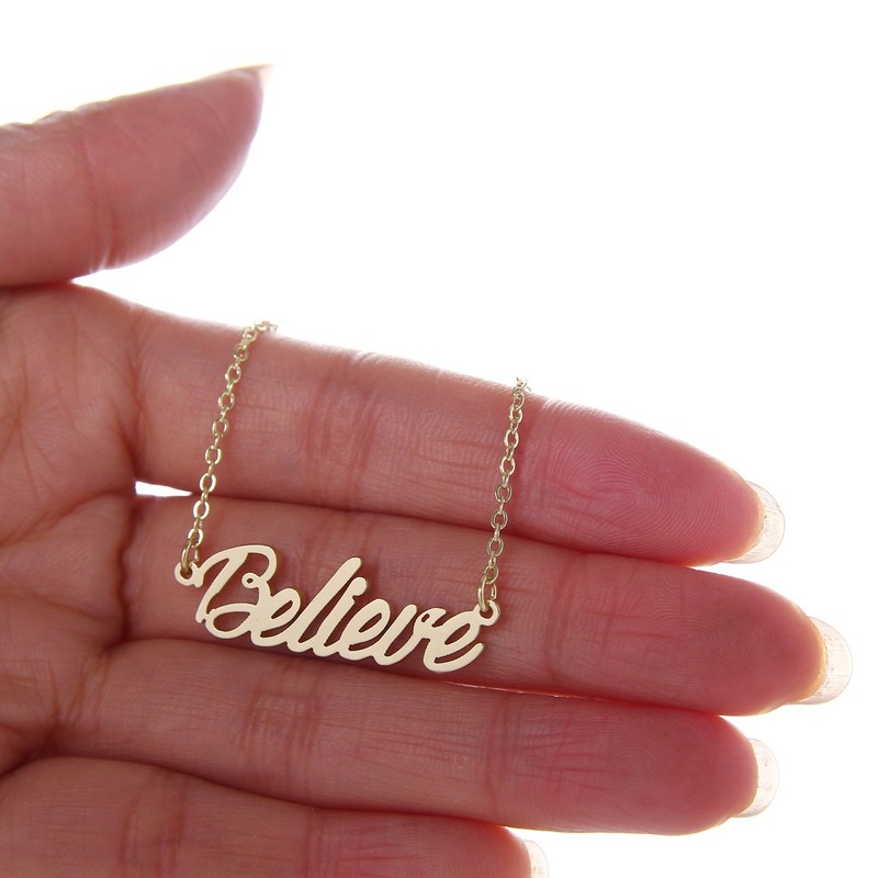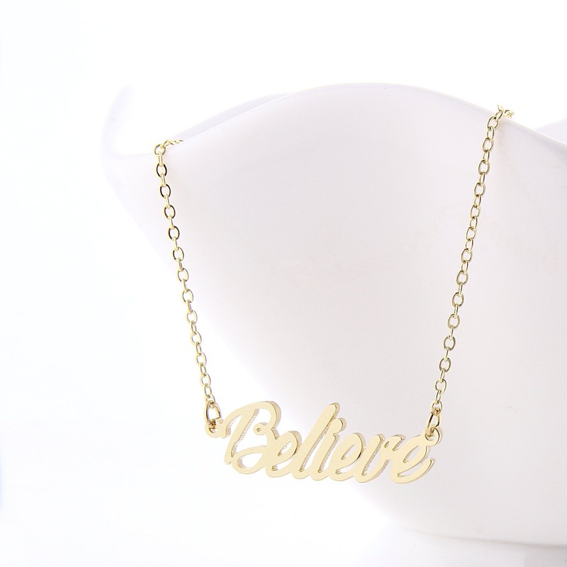 AOLO Dainty Believe Monogram Script Necklace Gold