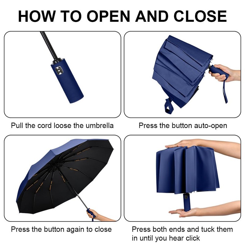 - Fully automatic umbrella: the portable travel umbrella has a fully automatic system and is suitable for one-handed operation. Simply press a button and the umbrella opens or closes in one second. You can quickly get in and out of cars and buildings and avoid being caught by the rain easily.