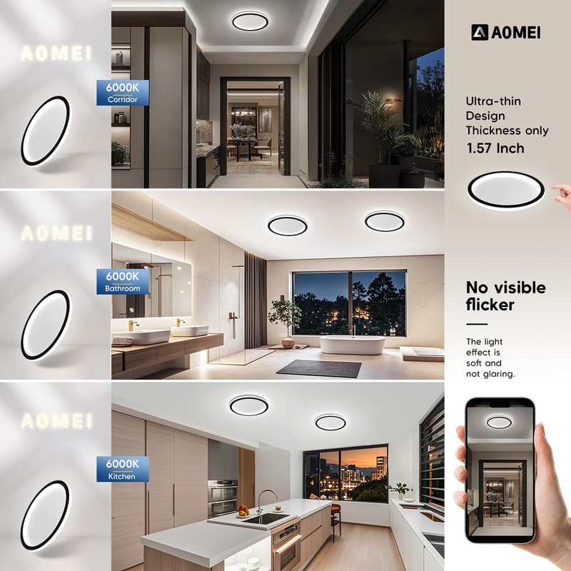 AOMEI 7.87Inch Full Spectrum Modern LED 6000K Flush Mount Ceiling Light, for Bedroom, Kitchen, Hallway (Round-7.87 inch)