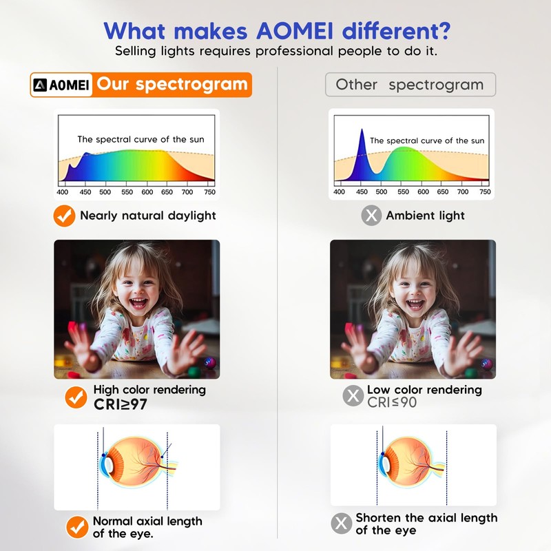 - 【Full Spectrum Ceiling Light】The full spectrum is based on the solar spectrum, and the closer the LED light source of the ceiling light is to the solar spectrum, the better. Full spectrum ceiling lights can reproduce sunlight indoors, provide healthy lighting, alleviate visual fatigue, and reduce eye discomfort, thereby improving the comfort of the user's lighting environment