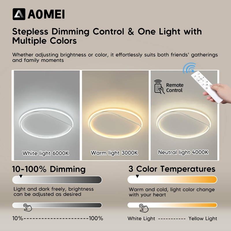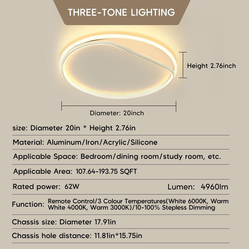 - Elegant Design: This 90CM ceiling light features a modern, minimalist style that seamlessly blends into any living room, bedroom, or dining area.