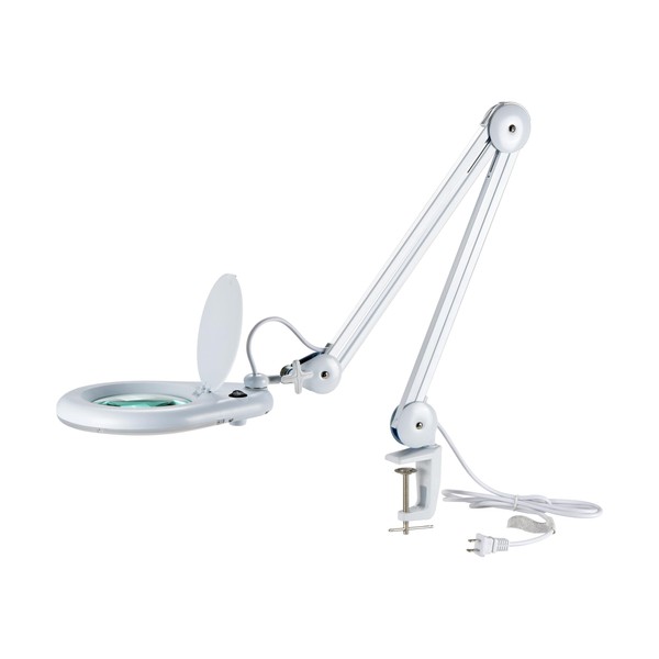 AOMEKIE Magnifying Lamp with Clamp, 5D (2.25X), 60 Pcs SMD LED, 5 Inches Diameter Lens Adjustable Stainless Steel Arm for Reading Craft Knitting Repair (White Cover)