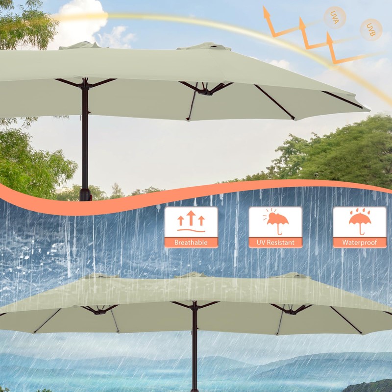 - Double-Sided Canopy with Large Shade:The twin patio umbrella cover can replace the old umbrella cover,bringing shady feel to sultry afternoon.Besides,there are three air-vented holes on the top to promote the circulation for breeze creation.