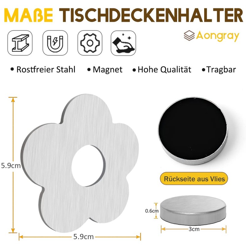 Aongray Pack of 8 Magnetic Tablecloth Weights, Extra Heavy Flower Magnetic Tablecloth Holder, Stainless Steel Table Cloth Clip for Outdoor Table Cloth Curtains