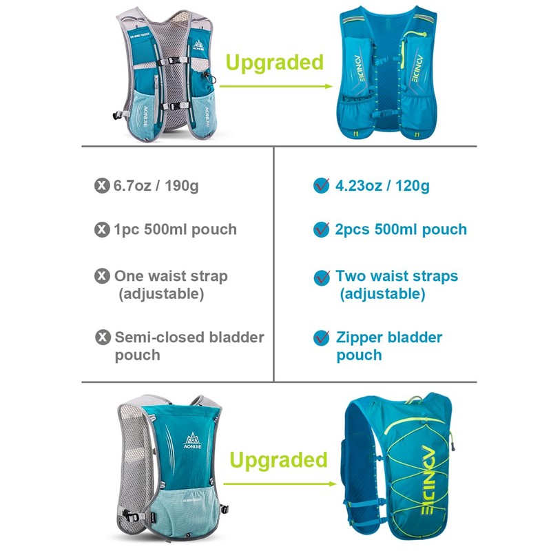 - [ SUPER LIGHT AND COMFORTABLE ] AONIJIE upgrade running hydration vest is only 4.2 Oz/ 120g, reducing much of the load during the running. It does not feel super bulky despite all of the stuff in your pockets.