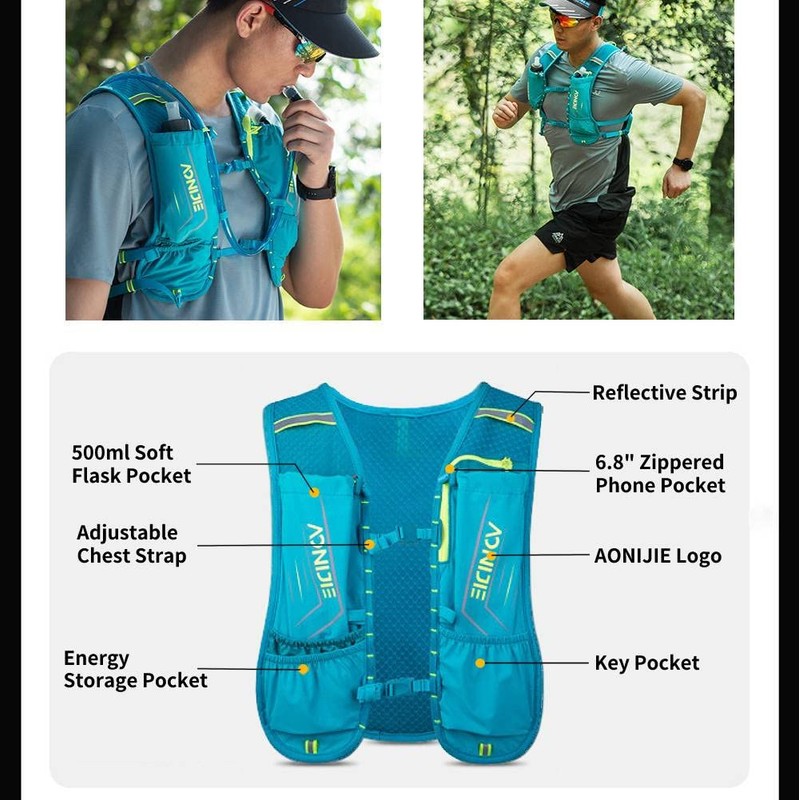 - 🏃♂️【Convenient Hydration System】AONIJIE 5L running vest comes with a BPA-free 1.5L water bladder, a bladder compartment with suspension system on the backpack, making it easy to drink while running without having to stop your pace. This hydration backpack vest allows you to enjoy the beauty of nature with all your heart and soul without worrying about hydration when outdoors.
