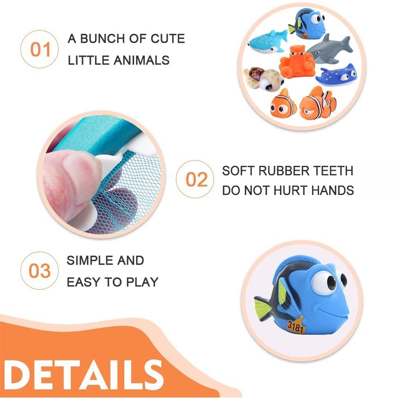 - ๐ ๐ ๐ข๐ง๐๐ข๐ง๐ ๐๐๐ฆ๐จ ๐๐จ๐ฒ๐ฌ ๐๐๐ญ: Our finding nemo toys include 8 kinds of sea animals, Turtle, Nemo, Nemo's Grandpa, Shark, Dolly, Manta Ray, Luck and octopus and a fish net. Each has a unique shape, the baby will love it, and it can also be used while bathing Take a dip in the ocean world.