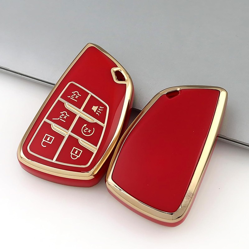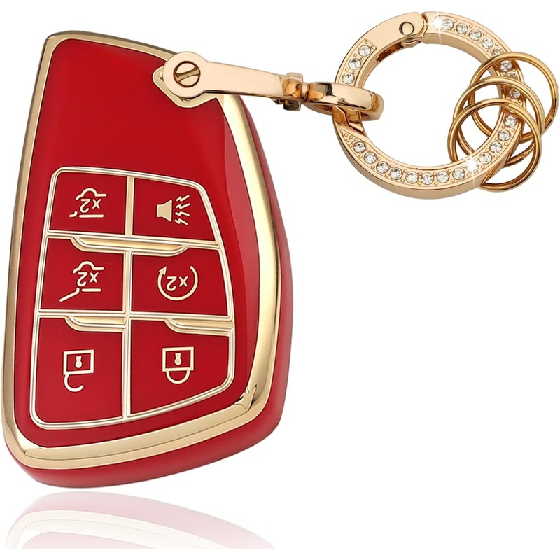 Aoocar 6 Button TPU Key Fob Cover with Bling Ring, Compatible with 2021 2022 2023 2024 2025 2026 GMC Yukon Denali Sierra, Fit for Chevy Silverado Suburban Tahoe Buick etc, Red