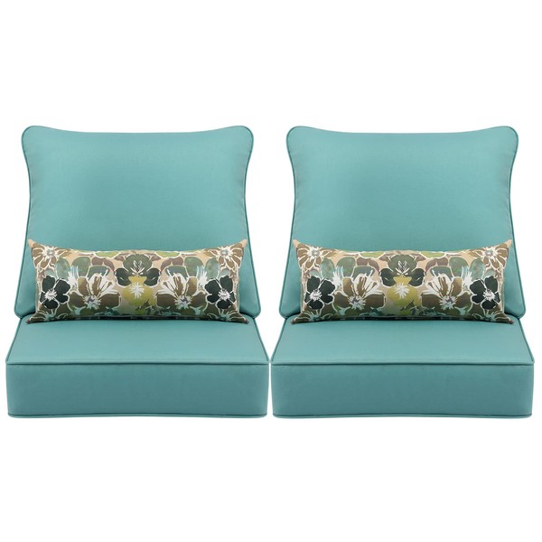 Aoodor 24'' x 24'' Outdoor Deep Seat Chair Cushion Set,Olefin Fabric Slipcover and Sponge Foam- Teal (Set of 2 Seats, 2 Backs, 2 Pillows)