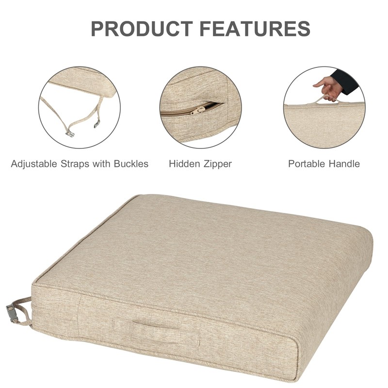 - USEFUL DETAILS: Designed with safety and convenience in mind, the cushions include anti-slip straps to keep them securely in place. The hidden zipper makes it easy to remove the covers for cleaning, and the convenient carry handle allows for effortless transportation