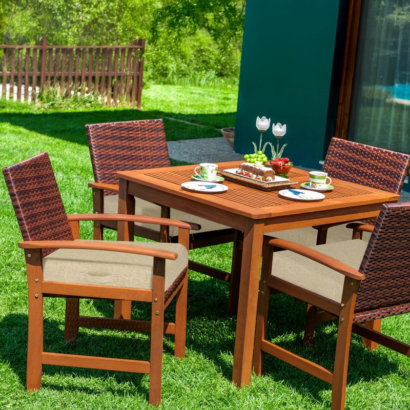 Aoodor Patio Chair Cushions Set of 4, 23 x 26 x 4 Inch Water Resistant Outdoor Seat Cushions with Handle and Ties, Square Corner Cushions for Patio Furniture Garden Lawn, Brown