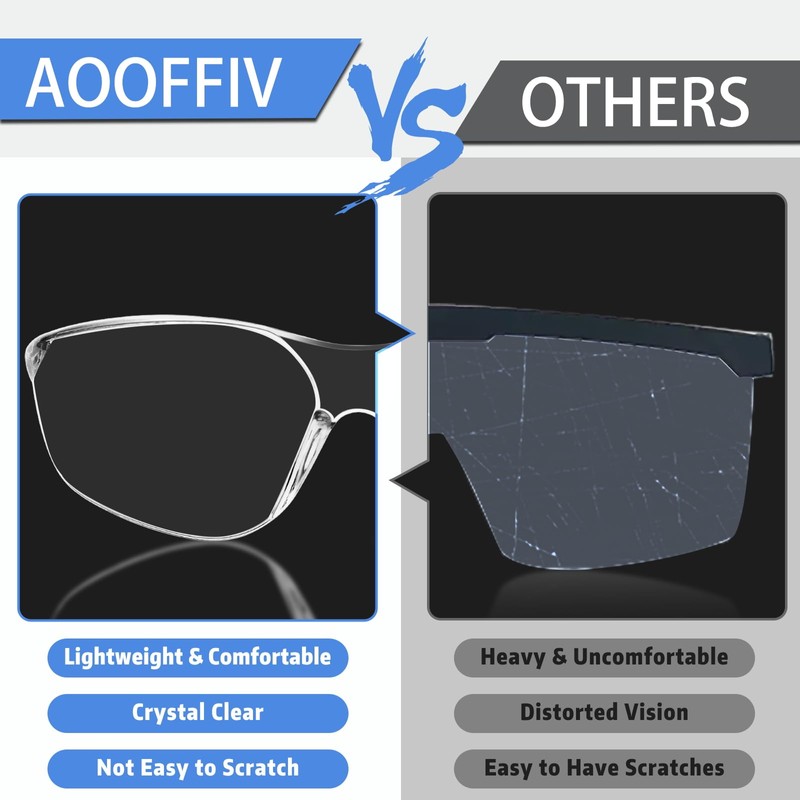 - IMPACT AND SCRATCH RESISTANT LENS :Our safety glasses are made of polycarbonate, So the lens are strong and clear. The lenses can resistant impact and scratches, providing us with a clear and safe view
