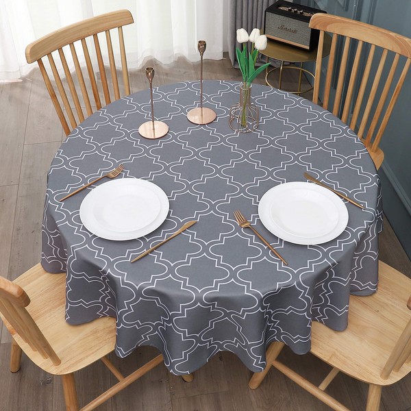 AooHome Faric Tablecloth, Spill-Proof Water Repellent Table Cover Geometric Design for BBQs, Machine Washable, Heavy Weight, 60 Inch Round, Charcoal