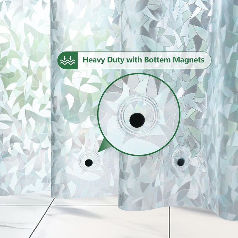 - Innovative Magnetic Bottom: Features weighted bottom with built-in magnets that securely attach to your tub, preventing curtain billowing and keeping water inside.