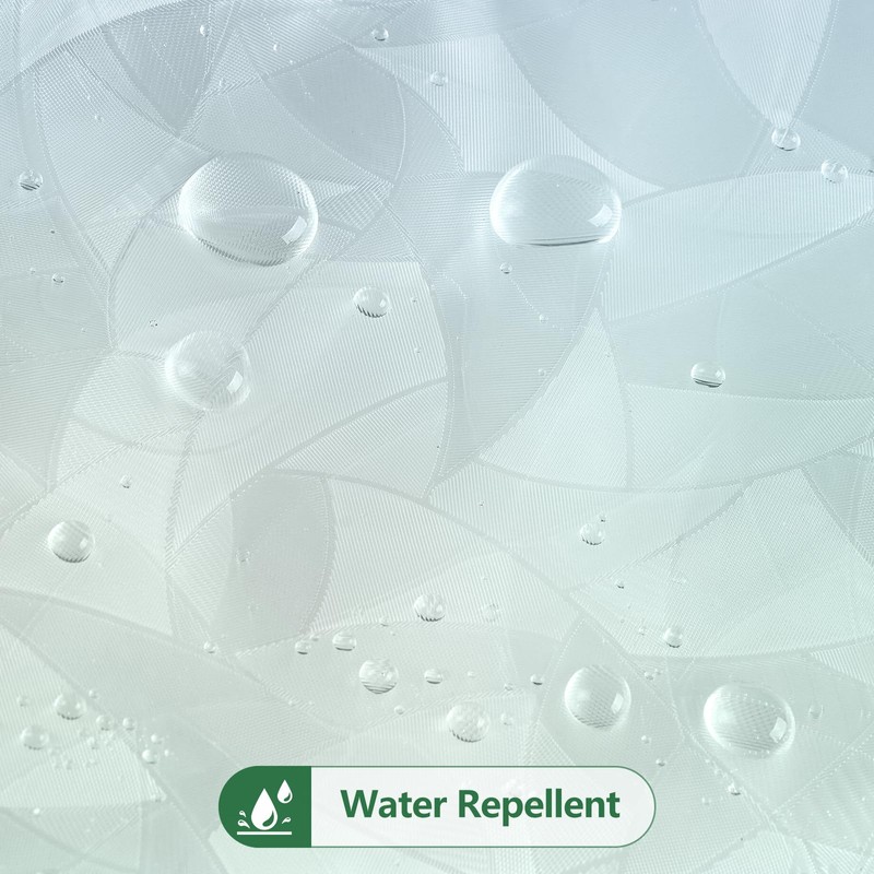 - EVA Material: Made of clear EVA plastic, this shower curtain liner is 100% water repellent. The translucent material is not environmentally harmful with no carcinogens, PVC free, chlorine-free, family-safe and softer. Not machine washable.