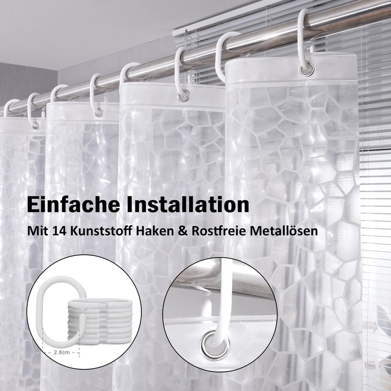 Environmentally friendly and anti-mould: The AooHome shower curtain is made of 100% EVA material, PVC and BPA-free, non-toxic and environmentally friendly. High-quality EVA material works against mould and antibacterial and effectively prevents the growth of mould and bacteria.