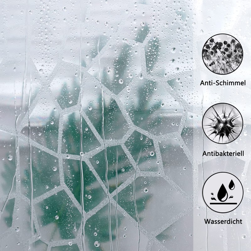 Waterproof and semi-transparent: the AooHome shower curtain is waterproof with 3D hexagon pattern. The smooth surface of the shower curtain makes water drops bead off easily and makes the shower curtain waterproof.