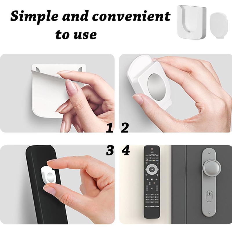 - Easy to install: the wall remote control holder consists of two parts. Simply peel off the adhesive backing and attach the TV remote holder to any flat vertical surface such as walls, glass, tiles, TV or headboard.