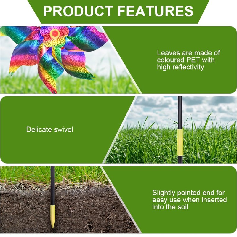 - 【Garden Decoration】: The windmill rotates in the breeze and reflects a dazzling light in the sun. This reflected light confuses birds and makes them fly away when they see the windmill. The windmill can also be used as a garden and courtyard decoration to create a more pleasant atmosphere for the surrounding environment.