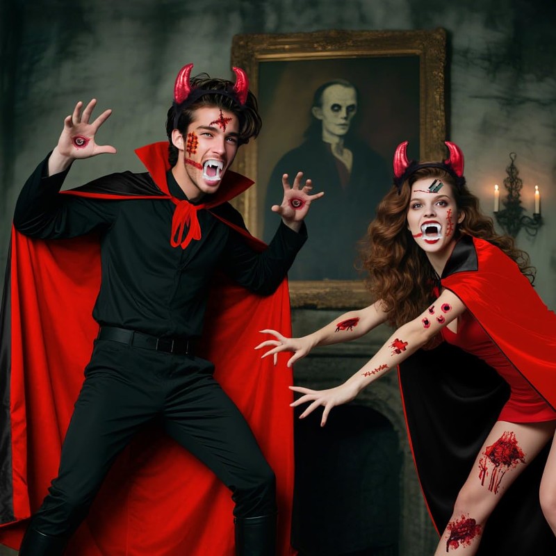 4-piece set (vampire dentures*1+horn headband*1+scar tattoo stickers*30 sheets+cape*1)