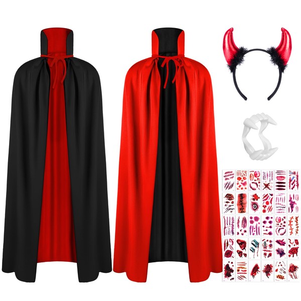 AOOWU Adult Hooded Cape Set, Reversible Black and Red Cape Set with Collar Unisex Vampire Cape Witch Cloak Accessories for World Book DayHalloween Christmas Party Carnival Cosplay(A)