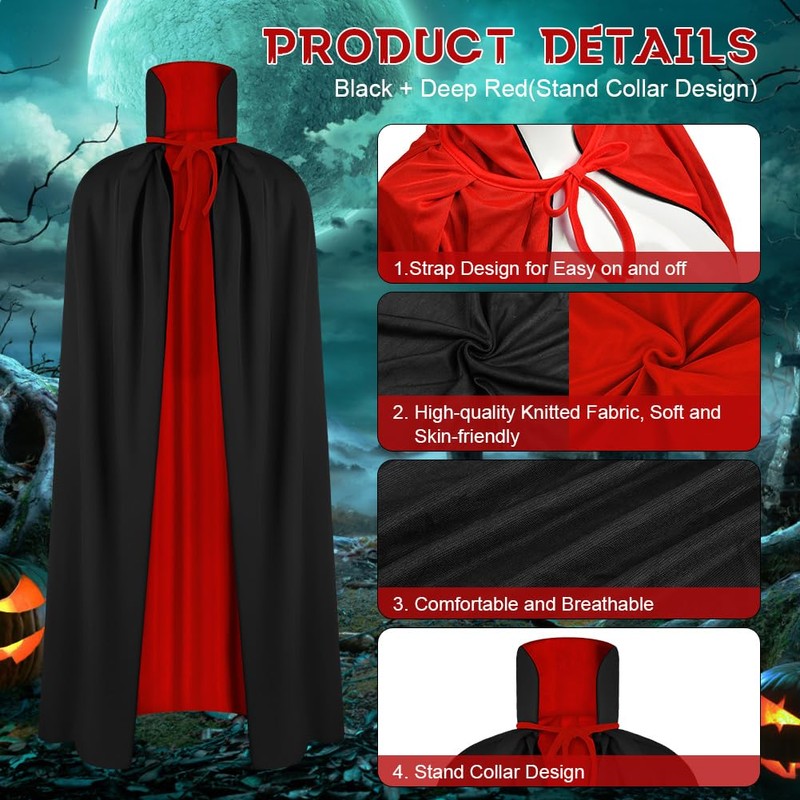 - 【DOUBLE-SIDED DESIGN】 This double-layer cape for adults adopts a double-sided design, one side is classic black, the other side is burgundy, and can be used on both sides. With just one cape, you can transform into a mysterious vampire or witch.