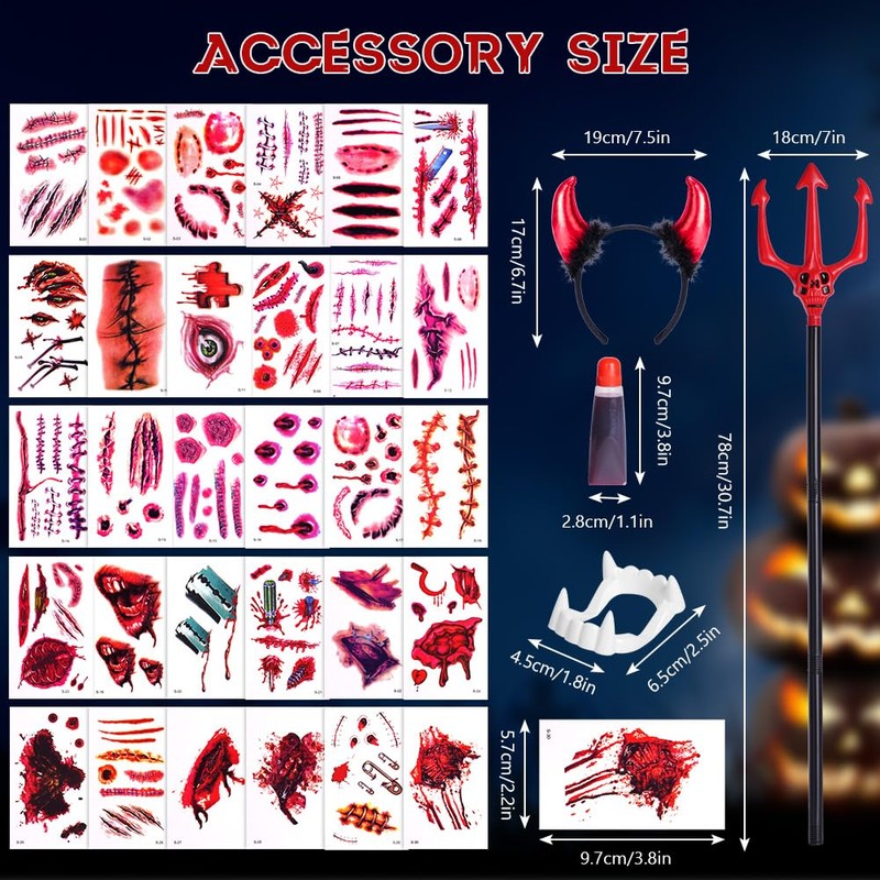 4-piece set (devil fork*1+horn headband*1+scar tattoo stickers*30 sheets+cape*1)/