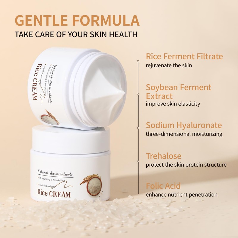 AOPEIBOTO Rice Cream Moisturizer, Rice Moisturizer, 50g/1.76fl.oz