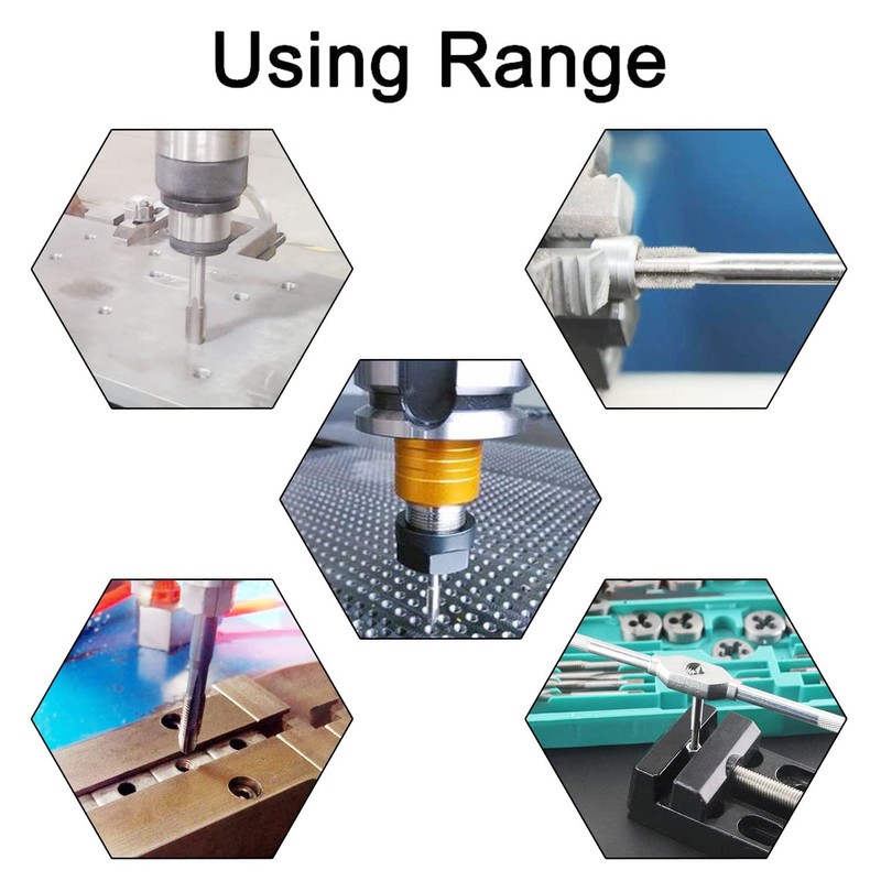 - Fácil de usar: al golpear, se debe girar cada 1/2 o 1 vuelta del tornado, se debe invertir aproximadamente 1/2 vuelta, para que las virutas se descarguen fácilmente después de romperse y. De esta forma se evita el atasco de los machos de roscar cónicos debido al bloqueo del filo de corte. Durante este proceso, es recomendable agregar refrigerante al mismo tiempo, y no tocar el filo con las manos directamente para evitar rayones.