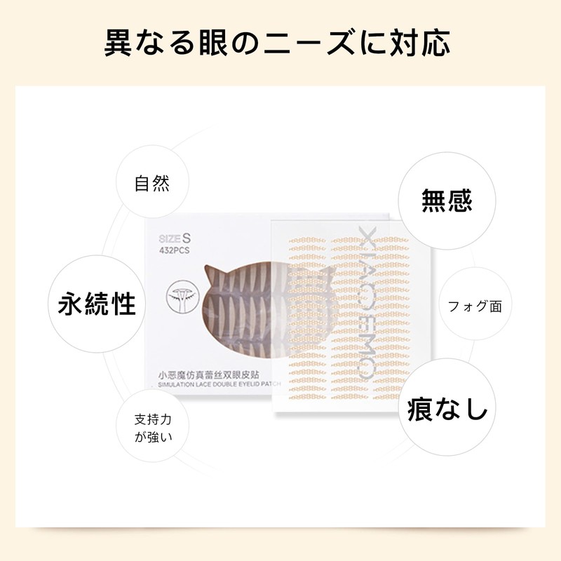 • 多様な目元タイプに適応 【様々な形状】:·小半月型:既に二重まぶたがある人の調整に適しています。 ·半月型:小さな二重まぶた、内二重まぶた、ぷっくりしたまぶたなど多様な目元タイプに対応できます。細かい調整が可能で、目元の形を整えることができ、様々なスタイルの二重まぶた効果を実現できます。 ·月牙型:眼頭から眼尾にかけて自然なアーチを描くことができ、一重まぶたの方でも、ぱっちりとした二重まぶたに見せる効果があります。また、既存の二重ラインをより鮮明に見せたい場合にもおすすめです。 ·オリーブ型:一重まぶたやぷっくりしたまぶたの人に理想的です。貼り付け位置や角度を微調整することで、自然な二重まぶたラインを作り出すことができます。