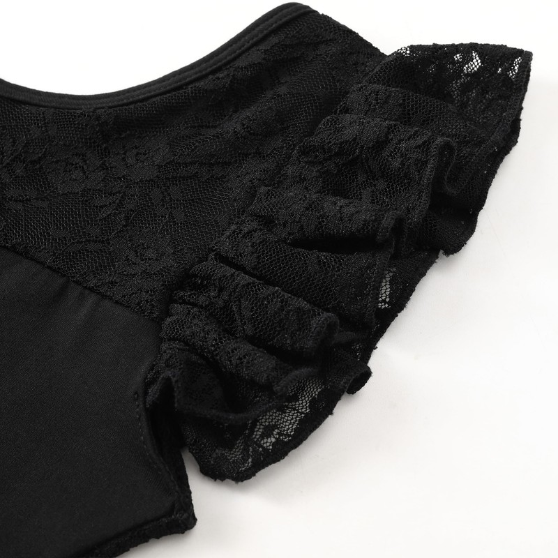 AOQUNFS Girl's Lace Patchwork Ruffle Short Sleeve Leotards for Ballet Dance and Gymnastics, R01-Black, 2-3T