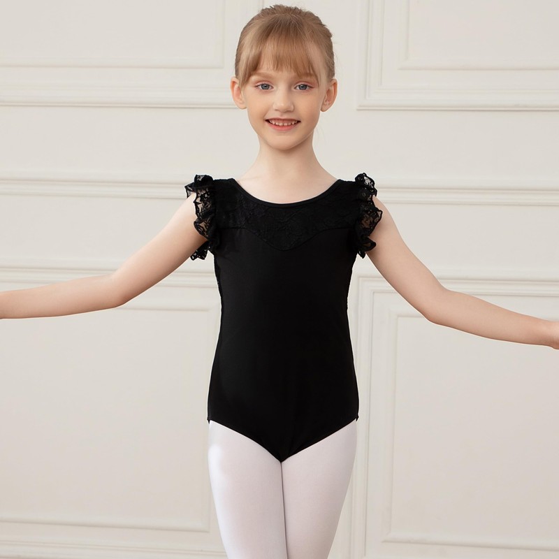 - ❥ Unique design: The leotard is designed with a classic round neck tank top, with lace splicing on the shoulders paired with lace lace at the cuffs. The back is made with U-shaped collar design, which is convenient for little dancers to wipe sweat.